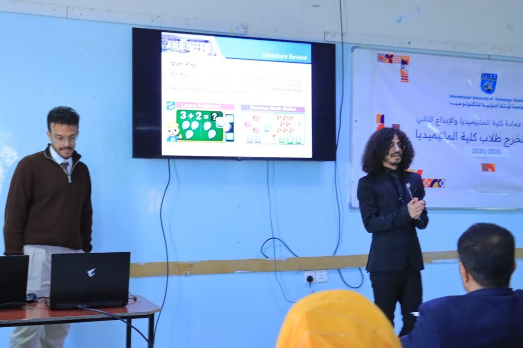 Defense sessions continued with diverse creative projects: “Erth” (3D VR models of Islamic heritage); “Bait Al-Aseed” (3D modern-traditional architectural fusion for a Yemeni restaurant in Turkey); “MathLand” (An interactive math game for children); and “Makanak” (An Augmented Reality app for furniture shopping). Vice President Dr. Aqeel Al-Sormi highlighted that these works embody the high quality of the college’s outcomes and its ability to prepare cadres for the international labor market.