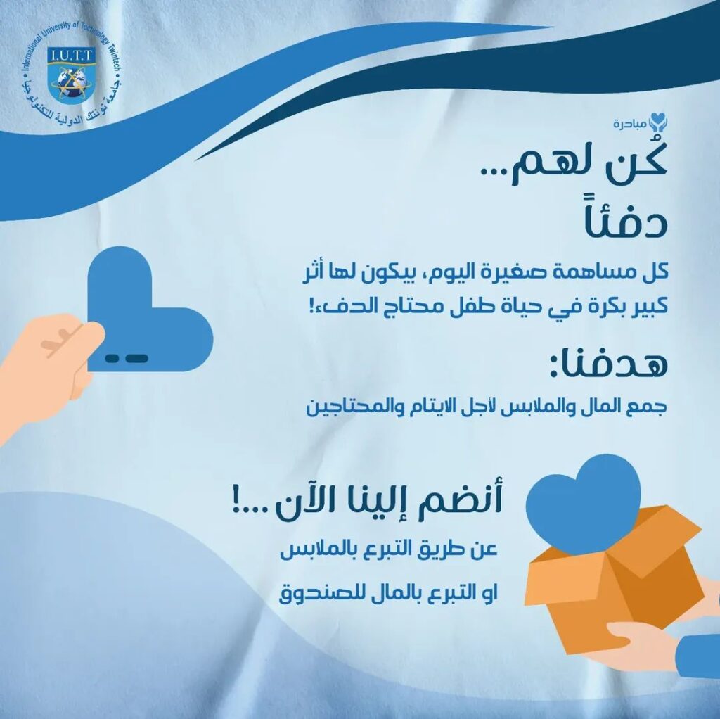 Students of the International University of Technology Twintech (IUTT) have launched a humanitarian winter initiative titled “Be Warmth for Them” (Kun Lahum Dif’an). The campaign invites the university community to contribute clothing and blankets, which will be refurbished and distributed to orphans and underprivileged families. Every contribution, regardless of size, aims to make a significant impact on the lives of children in need. Donations are currently being accepted at the university’s main reception desk. This initiative underscores the students’ commitment to social responsibility and the spirit of giving.