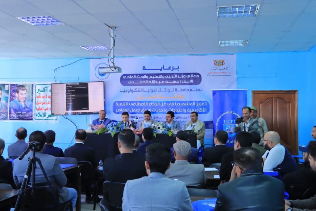 برعاية وزير التربية والتعليم والبحث العلمي الأستاذ حسن عبدالله الصعدي، أقيمت اليوم السبت الموافق 15 جماد الآخر 1447هـ الموافق 6 ديسمبر 2025م بجامعة تونتك ورشة عمل بعنوان (تعزيز الملتيميديا في ظل الذكاء الاصطناعي للتنمية الأكاديمية وتحديات سوق العمل المعاصر).