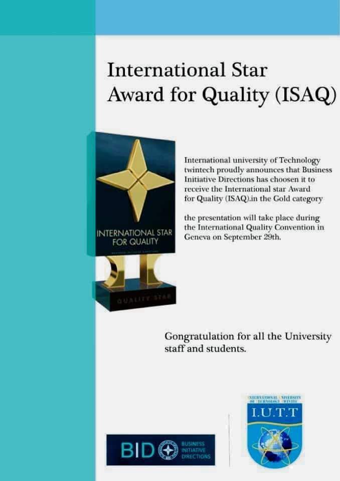 من الجمهورية اليمنية، ومنذ بداياتها، تعتبر جامعة تونتك الدولية للتكنولوجيا IUTT الجامعة اليمنية الوحيدة الحاصلة على جائزة النجمة الدولية في الجودة الأكاديمية من #جنيف بسويسرا، إضافةً لحصولها على مائة نقطة في الجودة التعل