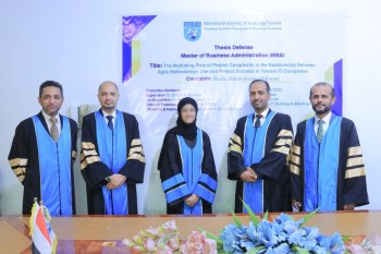 رانيا عبدالرحمن الارياني تنال درجة الماجستير من جامعة تونتك الدولية برسالة الدور الوسيط لتعقيد المشروع في العلاقة بين استخدام منهجية اجايل ونجاح المشروع في شركات تكنولوجيا المعلومات في اليمن